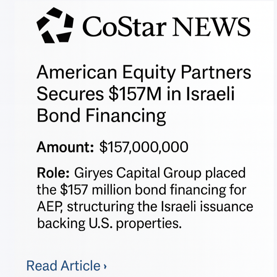 Tailored debt solutions via the Tel Aviv Stock Exchange for U.S. real estate companies with over $500M in AUM.